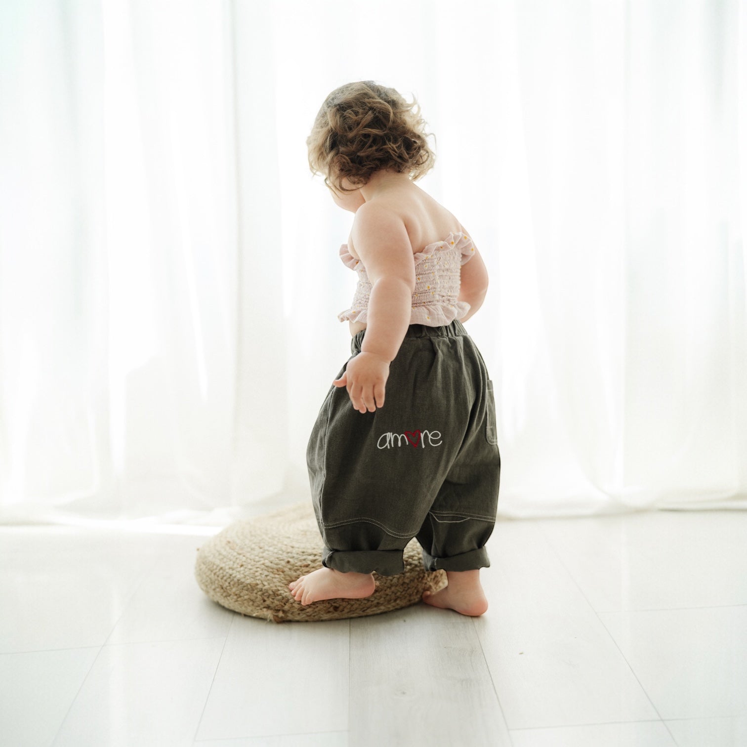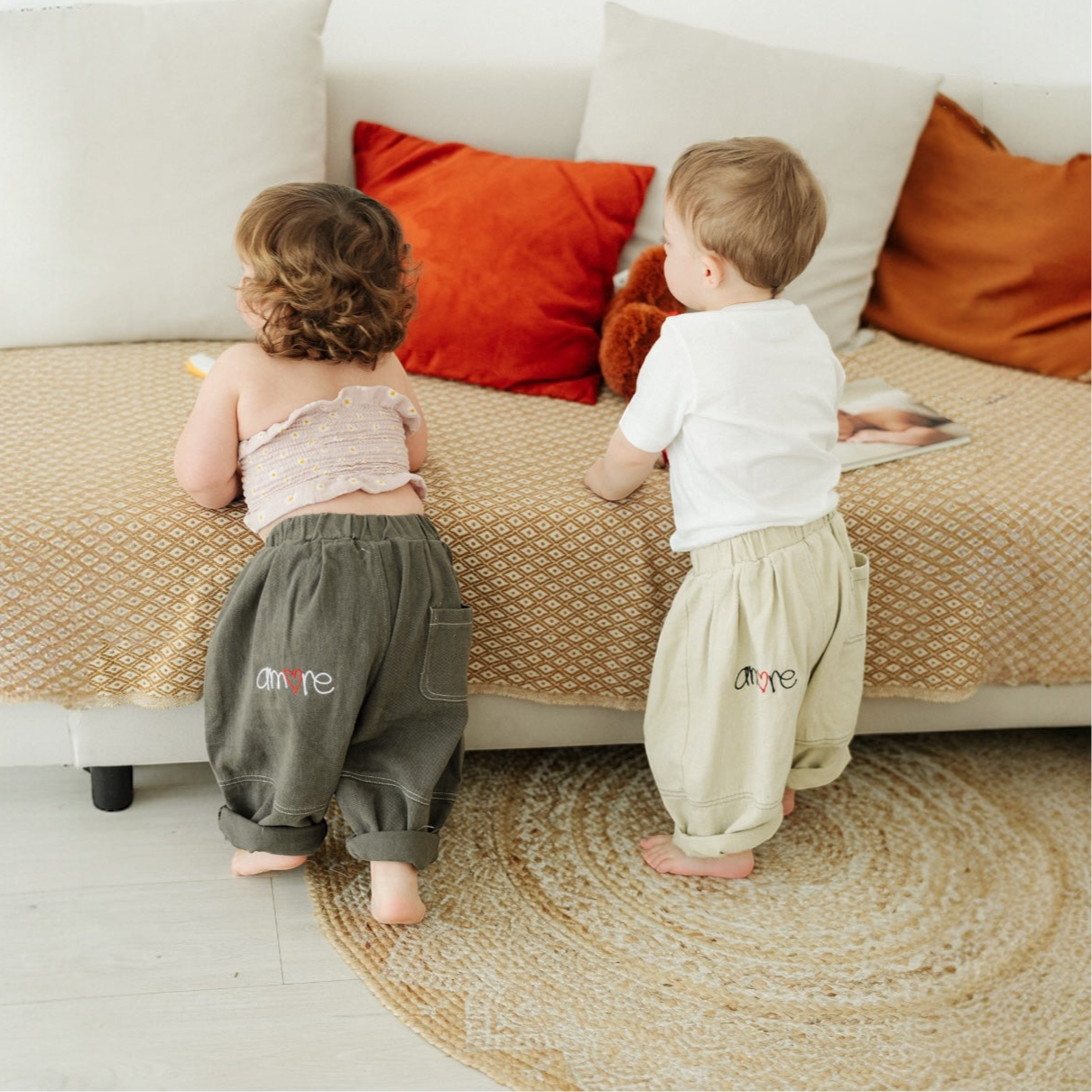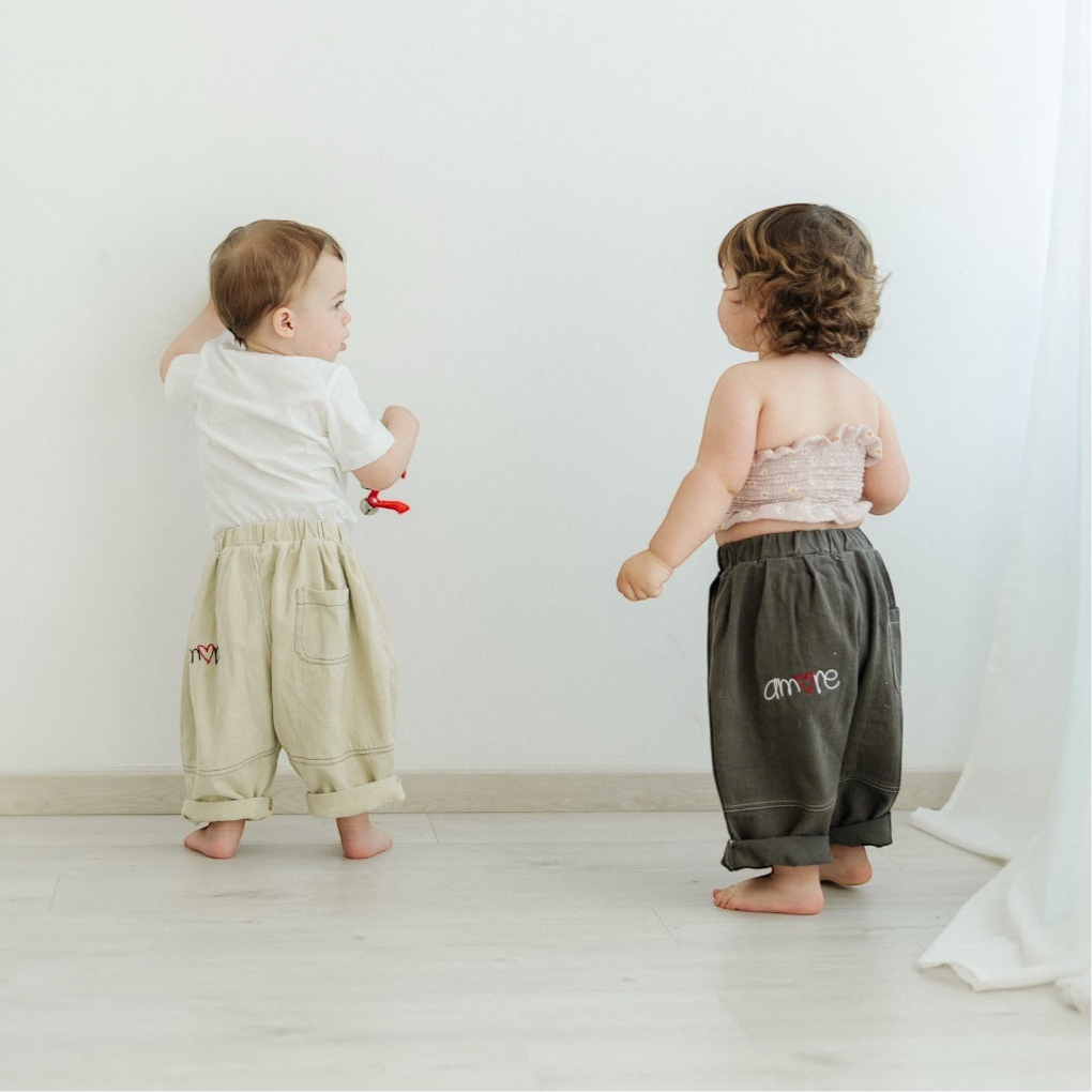 Un tocco in più. Ogni pantalone è ricamato con la scritta "Amore". La "O" è un cuore rosso, un dettaglio dolcissimo per i tuoi bimbi.