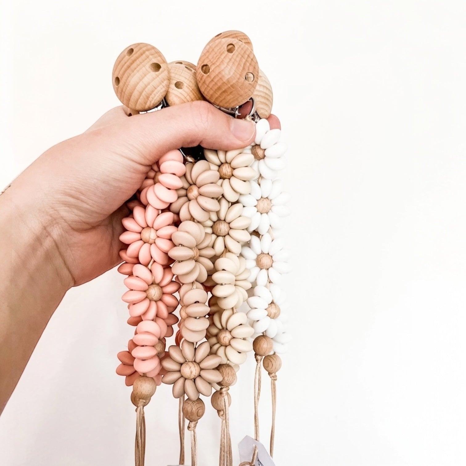 Catenella per il ciuccio in morbido silicone perfetta per la dentizione. Realizzata in materiale atossico di alta qualità e naturalmente leggero, igienico e antibatterico. Questa catenella per ciuccio è perfetta anche per i neonati.