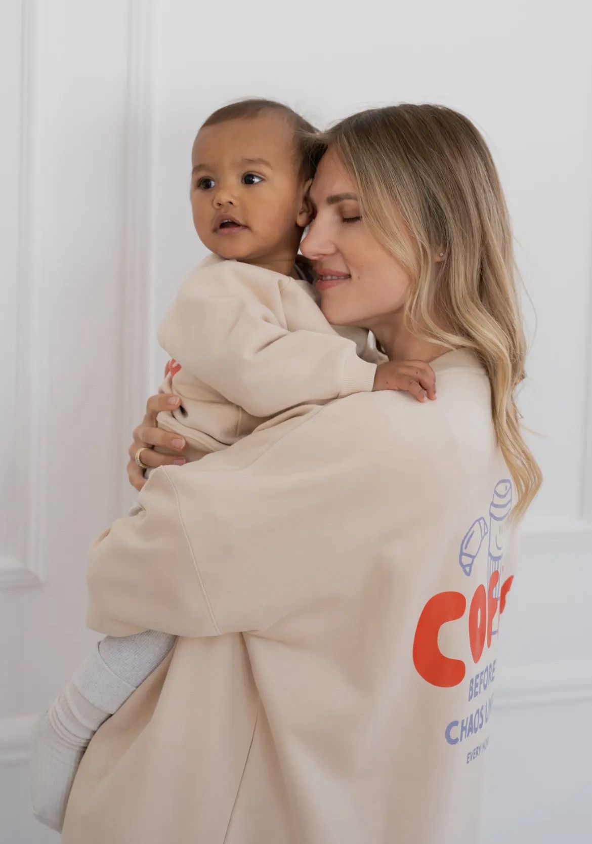 Una felpa speciale, per un genitore speciale. Questa frase divertente è realizzata in edizione speciale per Mini Me ed è stampata su una morbida felpa color beige.