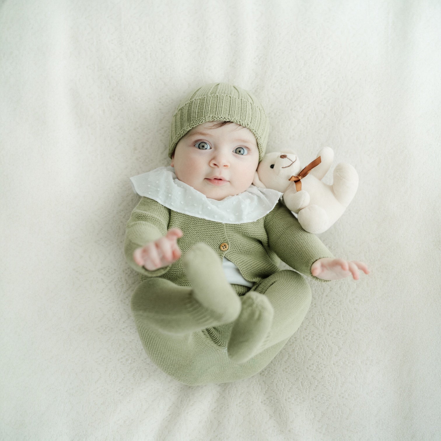 Completino per bebè realizzato in 100% cotone biologico, senza cuciture interne per garantire il massimo comfort ai più piccoli.