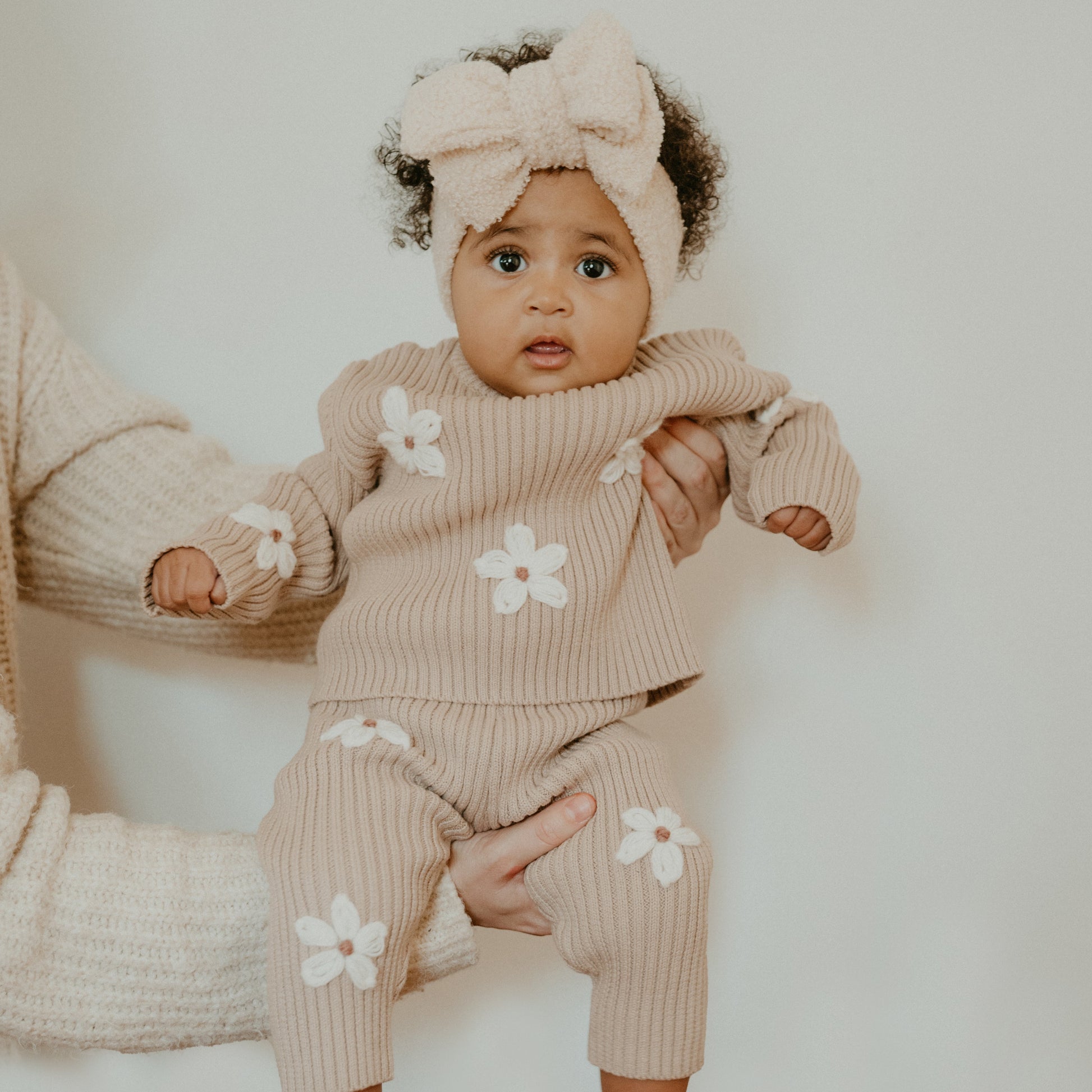 Il nostro completino chocolate è un delizioso set composto da maglia e pantalone realizzato in morbidissima maglia spessa di cotone. Perfetto per l'inverno e le mezze stagioni.