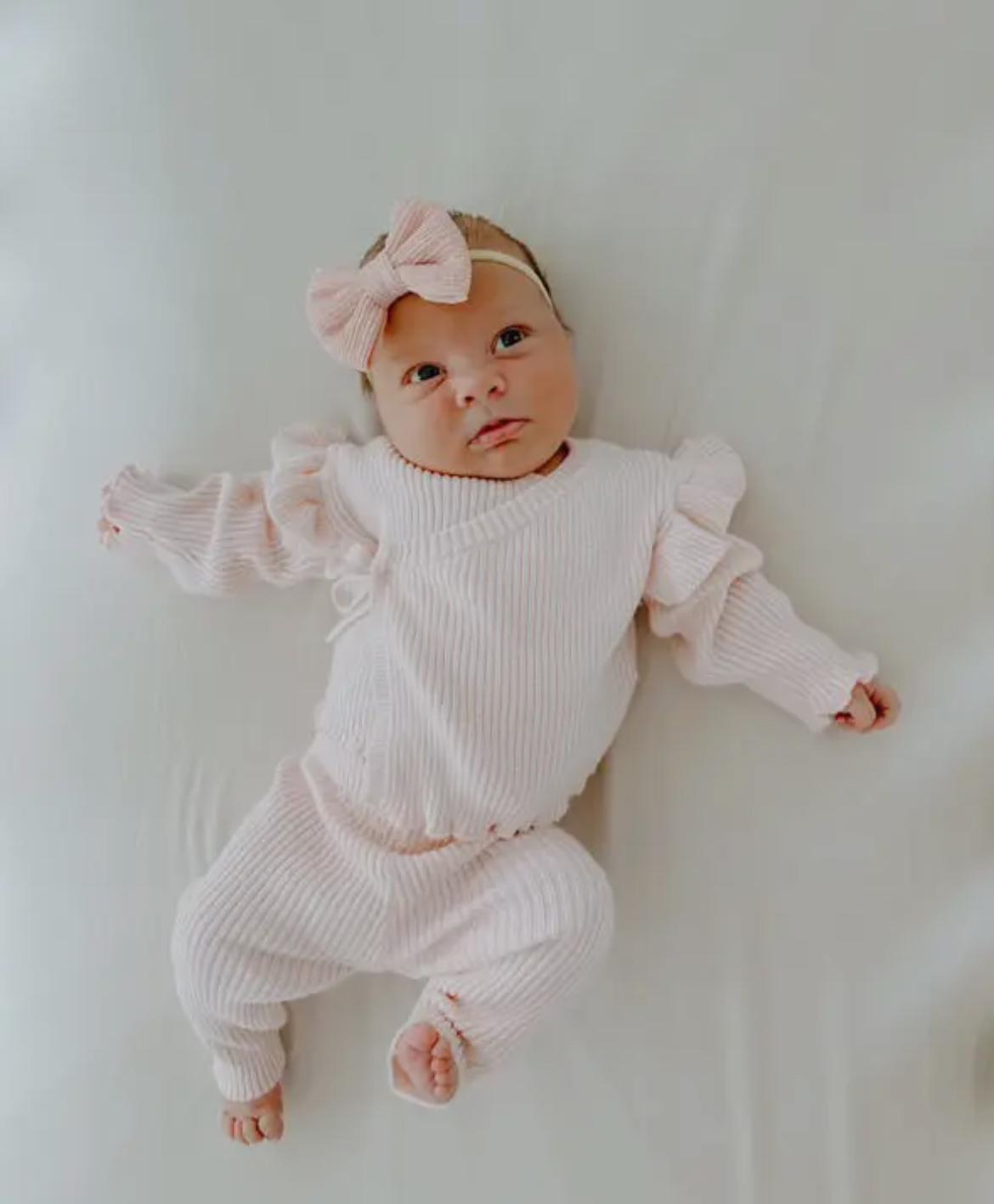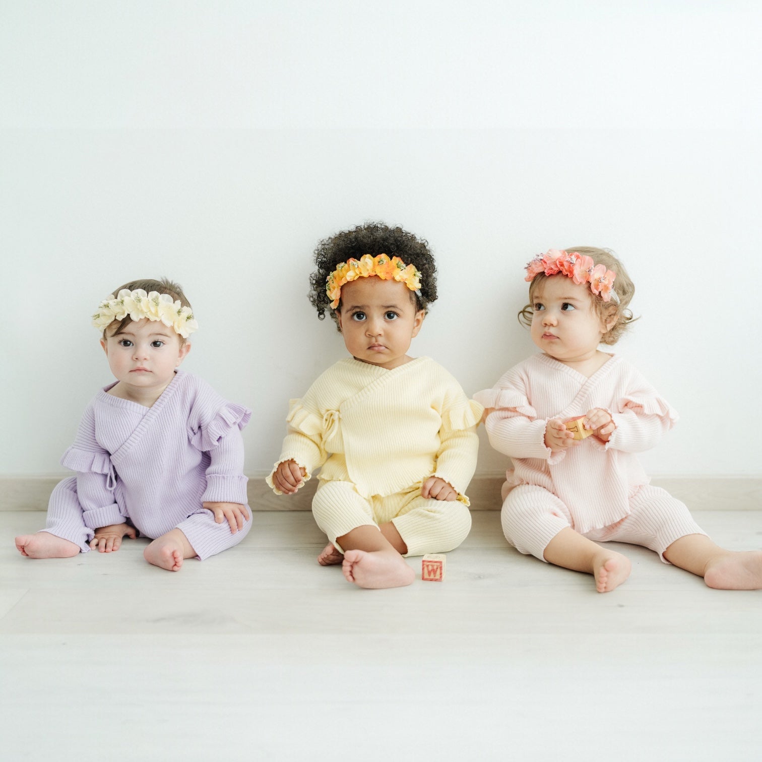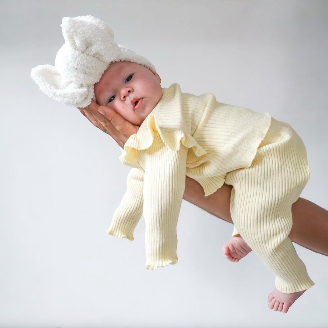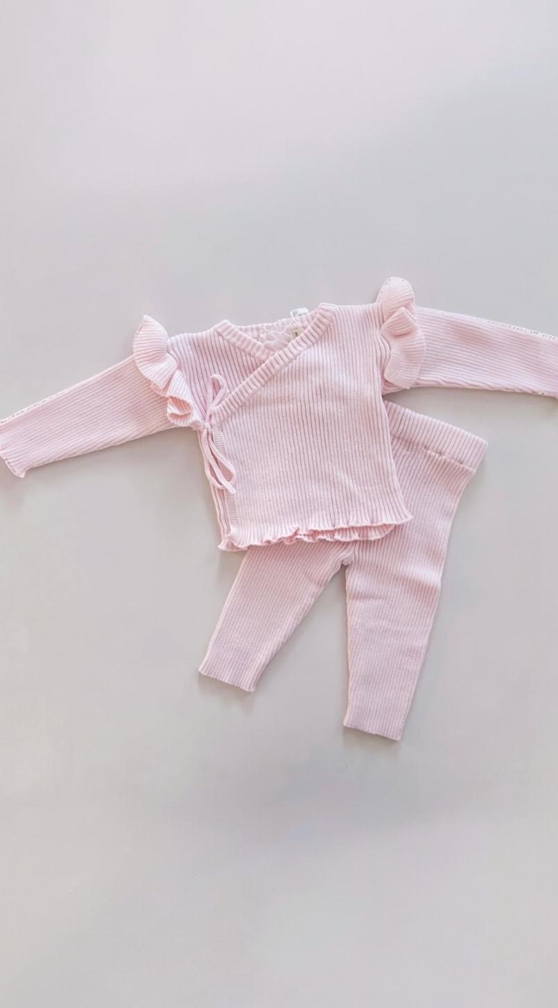 Delizioso completino in 100% cotone morbido, leggero e traspirante. Questo set color pastello è composto da 2 pezzi: