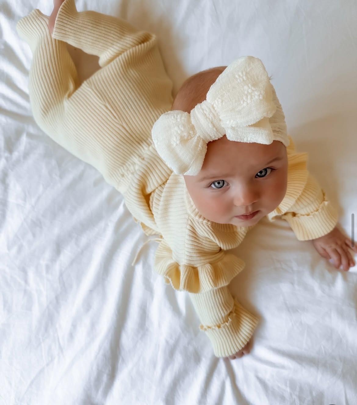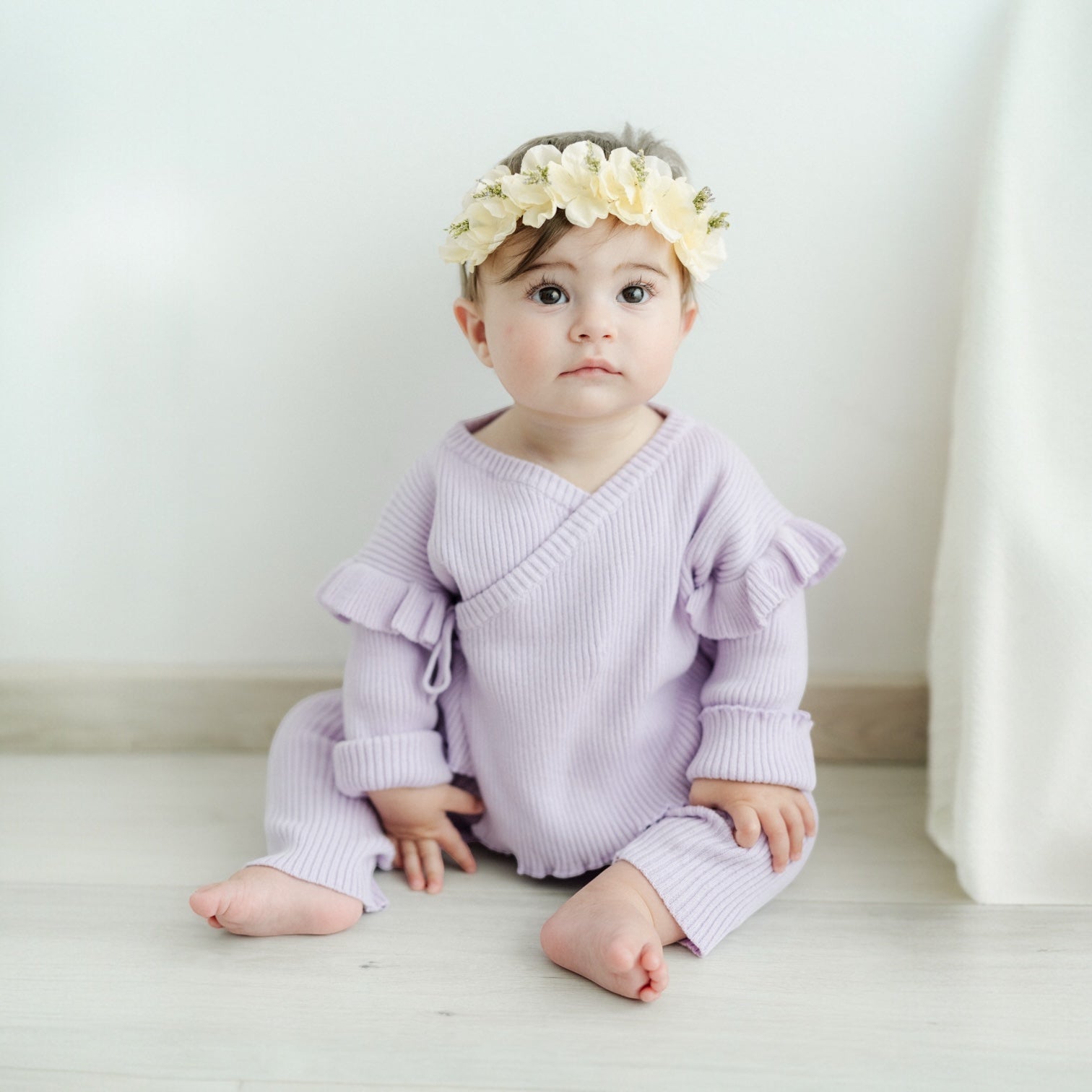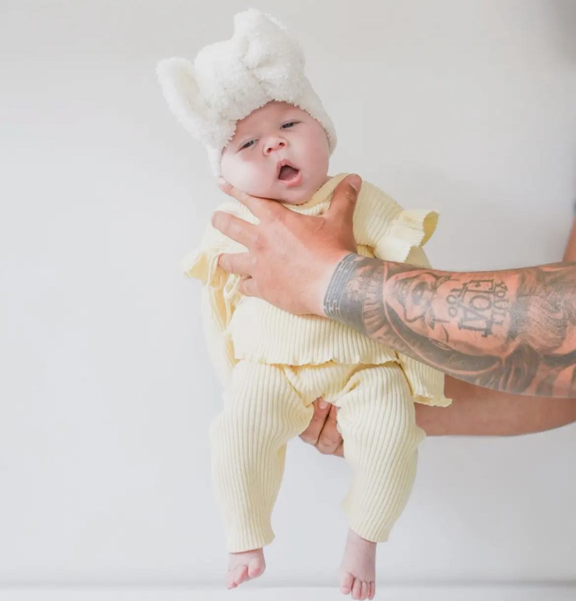 Delizioso completino in 100% cotone morbido, leggero e traspirante. Questo set color pastello è composto da 2 pezzi: