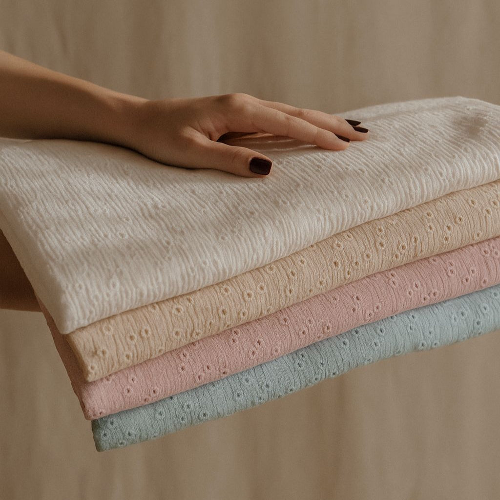 Copertina neonato per culla, passeggino e lettino in tessuto sangallo, un tessuto particolarmente elegante e romantico, dal fascino senza tempo.
