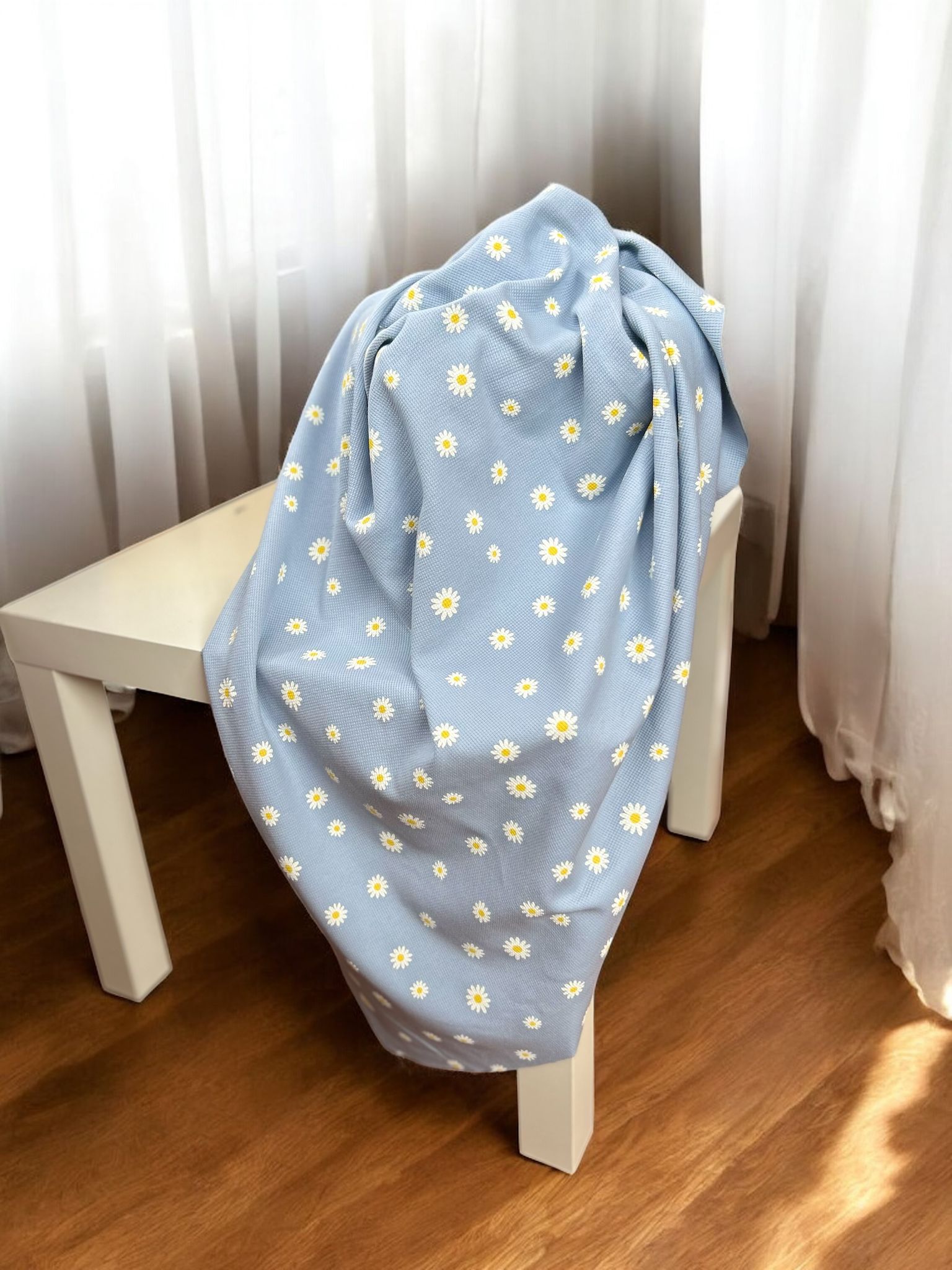 Daisy è la nostra prima copertina per culla, lettino o passeggino interamente realizzata a mano. È pensata per l'estate e le mezze stagioni perché realizzata in jersey waffle 100% cotone.