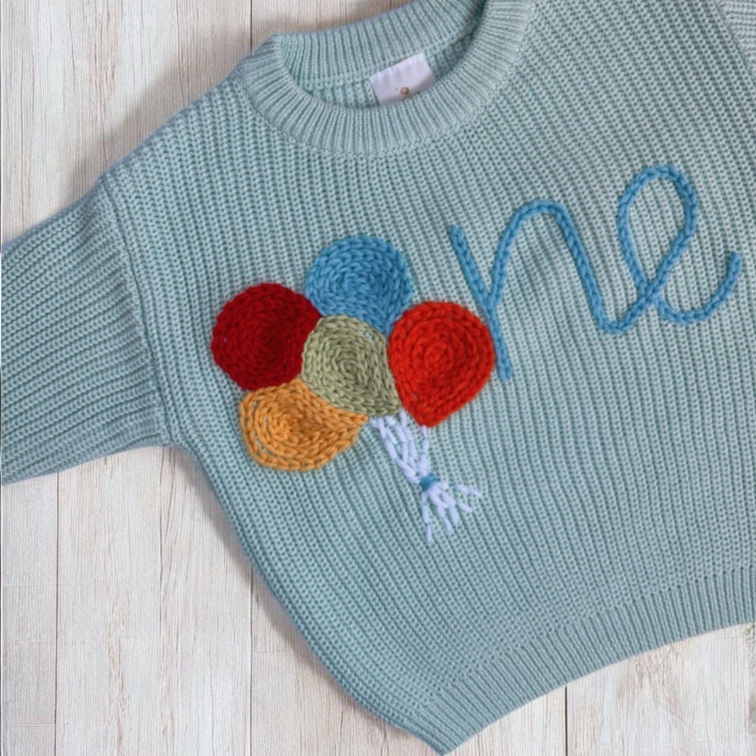 Questo maglioncino è pensato per dare un tocco di unicità ai giorni speciali dei tuoi bambini. Con ricamo palloncini super colorati!