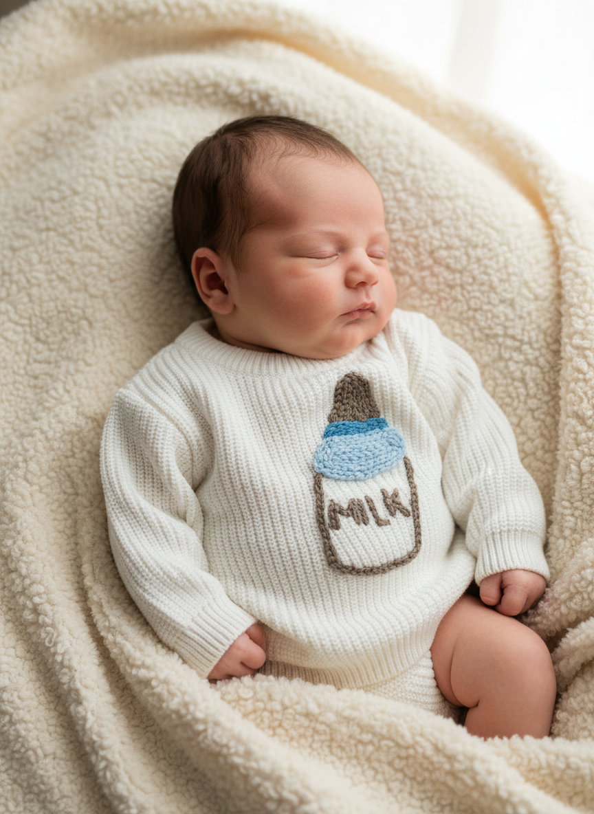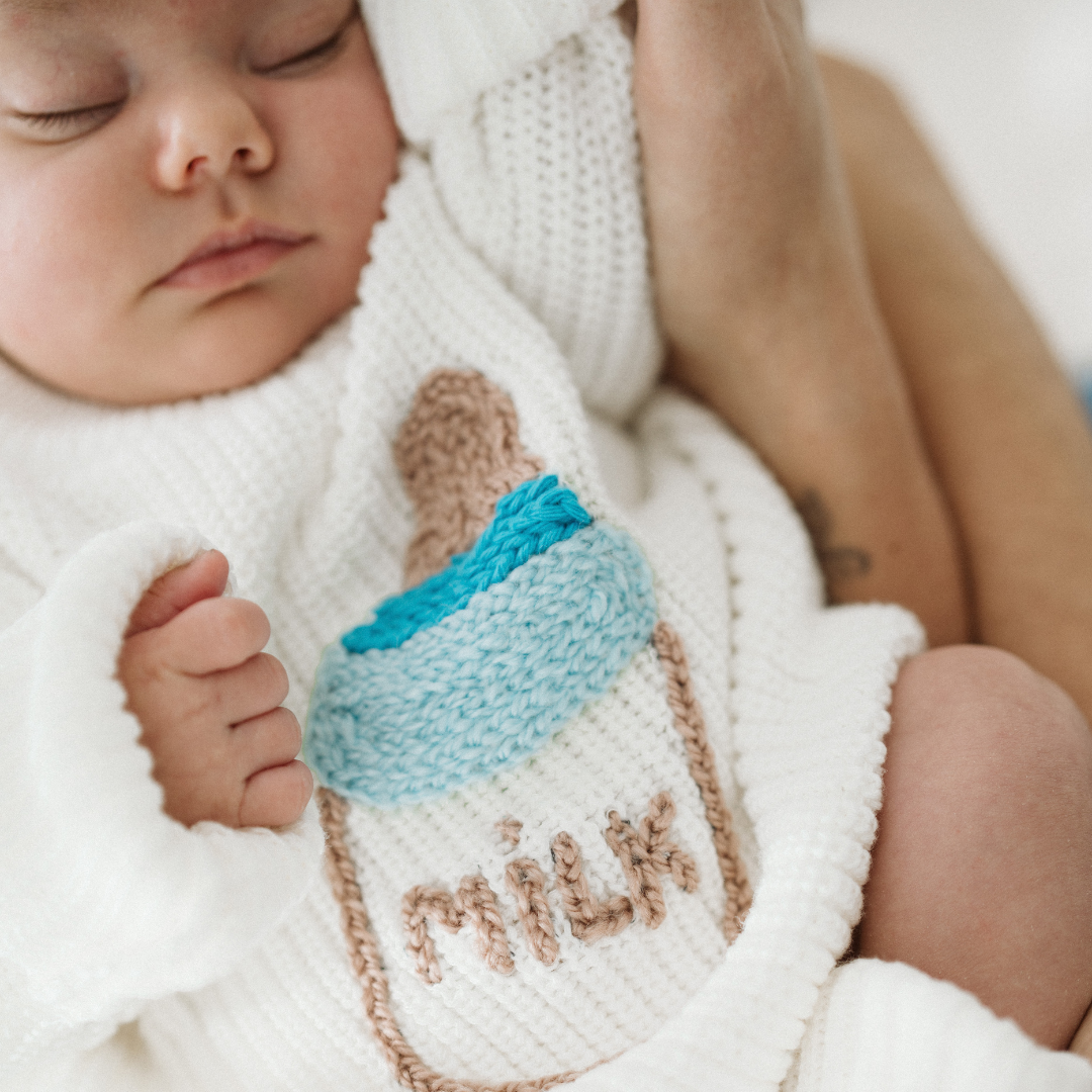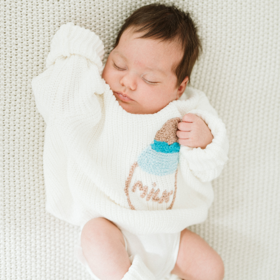 Divertente maglioncino ricamato a mano per i veri amanti del latte.