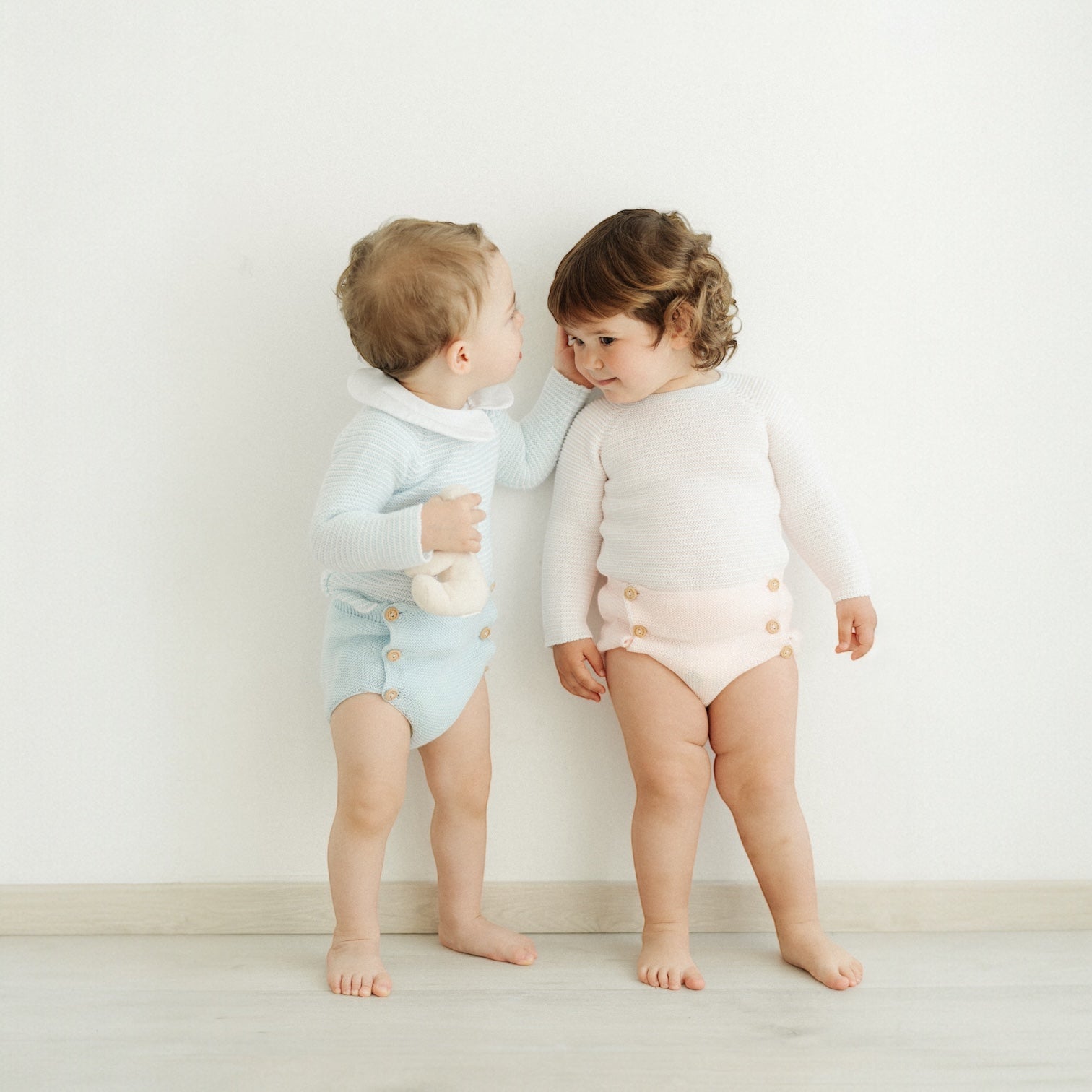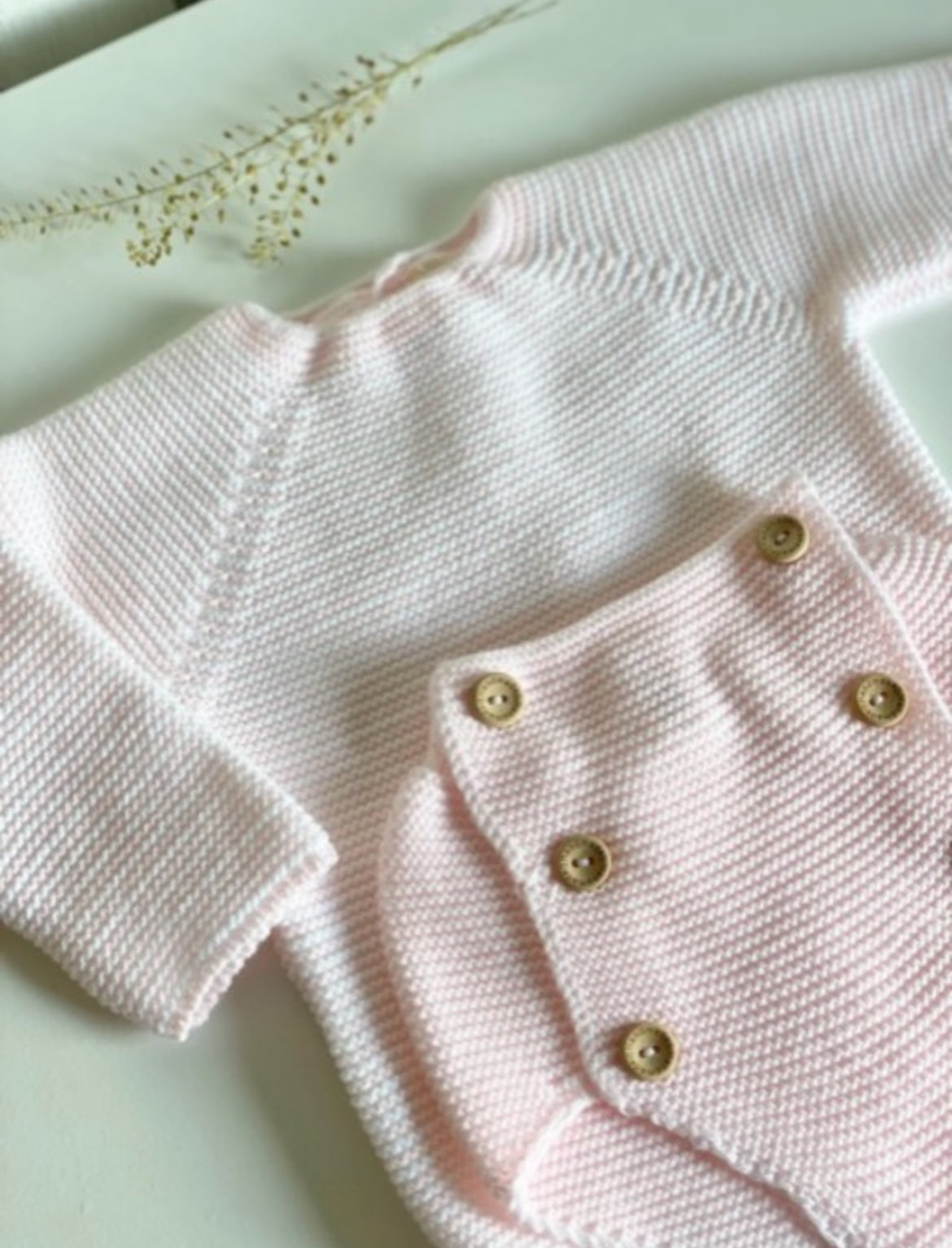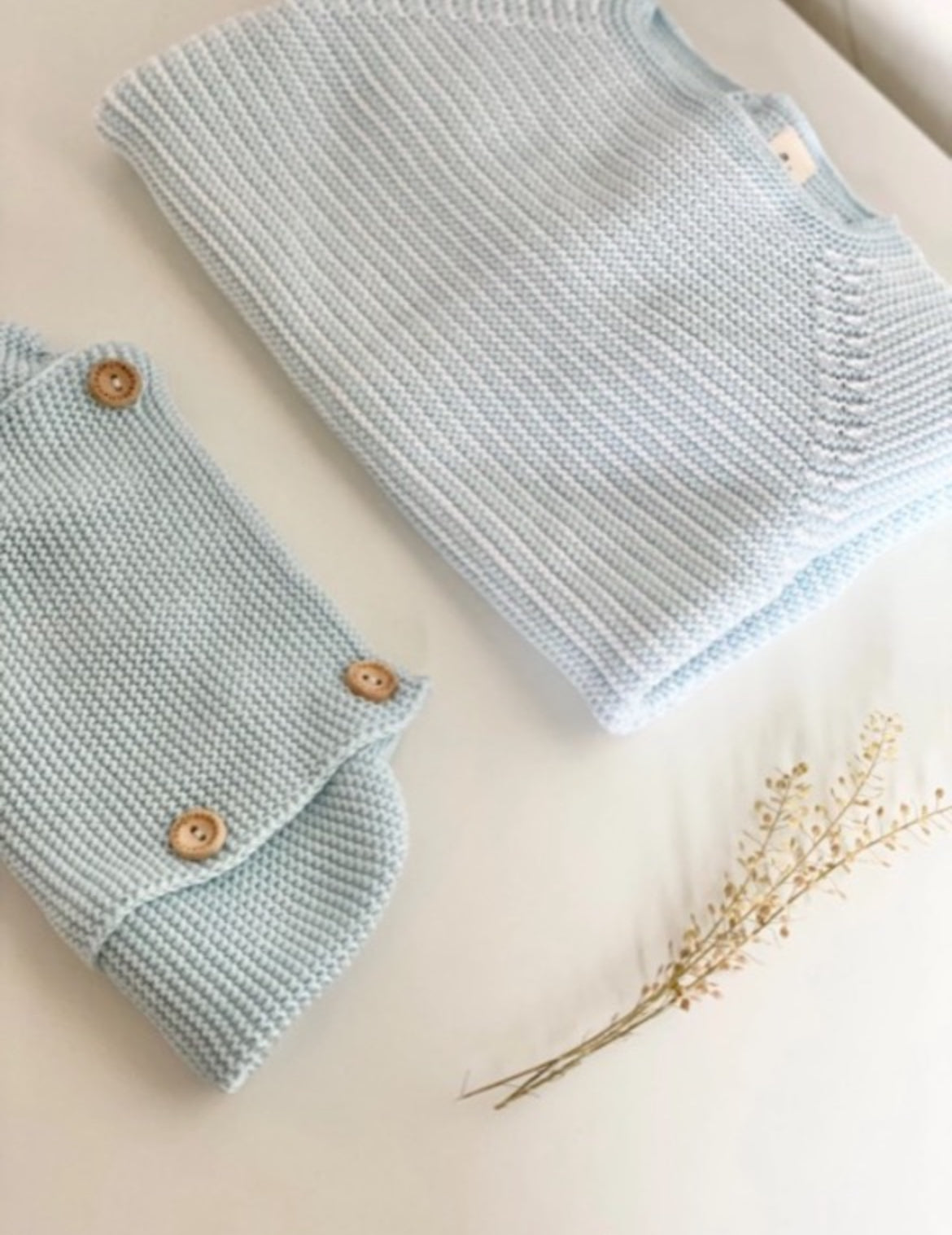 Questo completino è perfetto per la primavera/estate e donerà un tocco di eleganza senza tempo ai tuoi bambini. È rifinito a mano con deliziosi bottoncini in legno naturale.