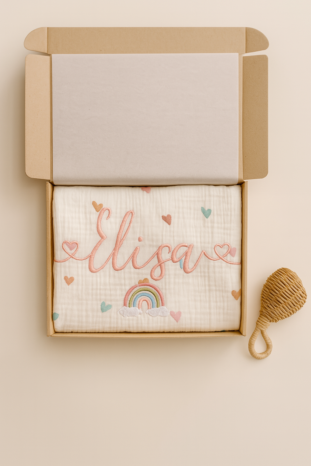 Sofficissima mussola di 100% cotone per avvolgere il tuo bebè in una nuvola di morbidezza. Queste mussole dalle dimensioni generose (90 x 65 cm) sono interamente cucite a mano in casa Mini Me.