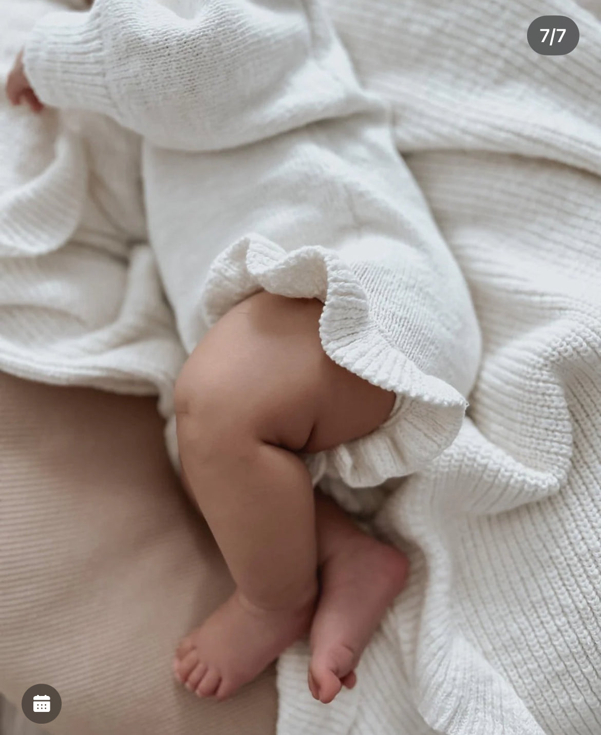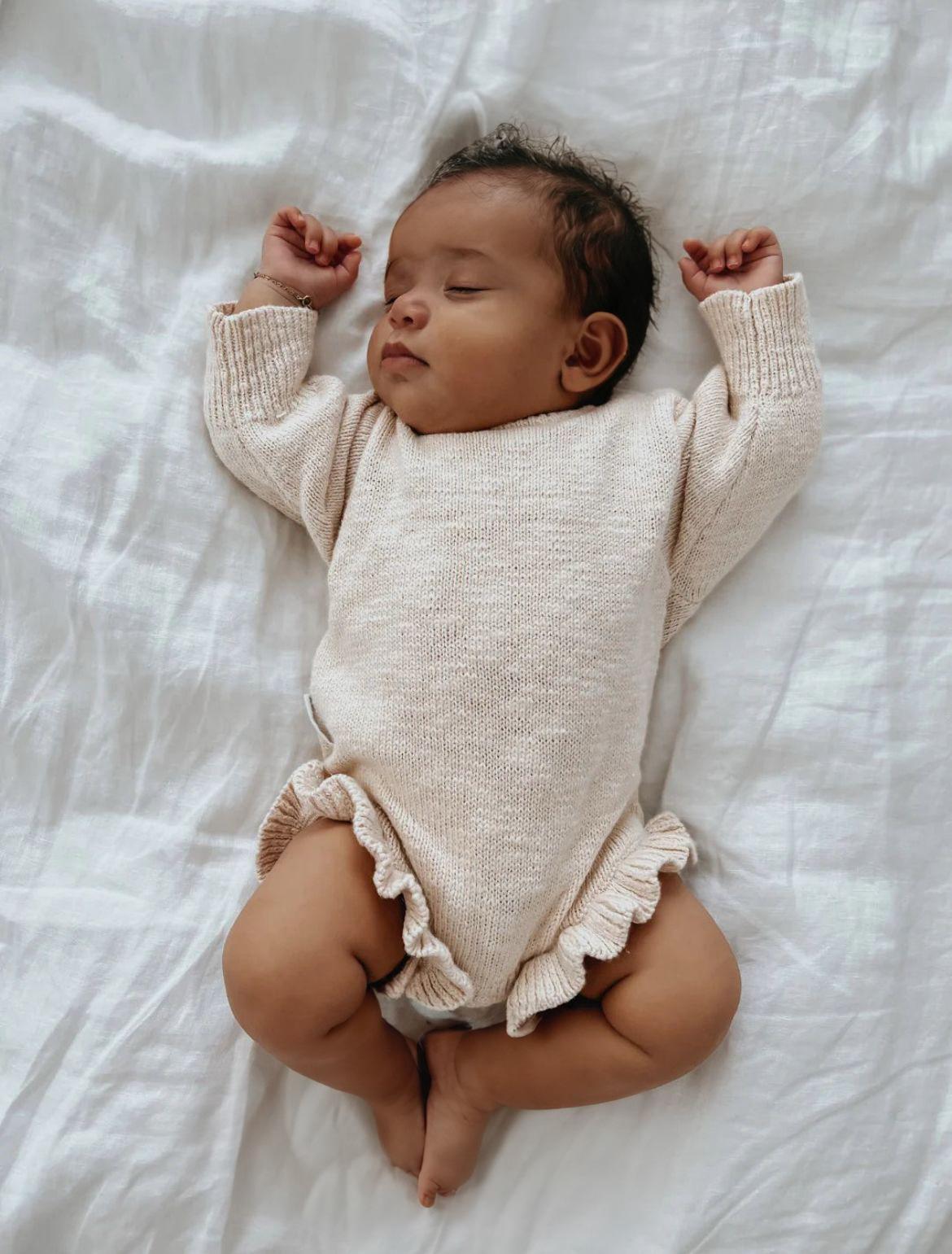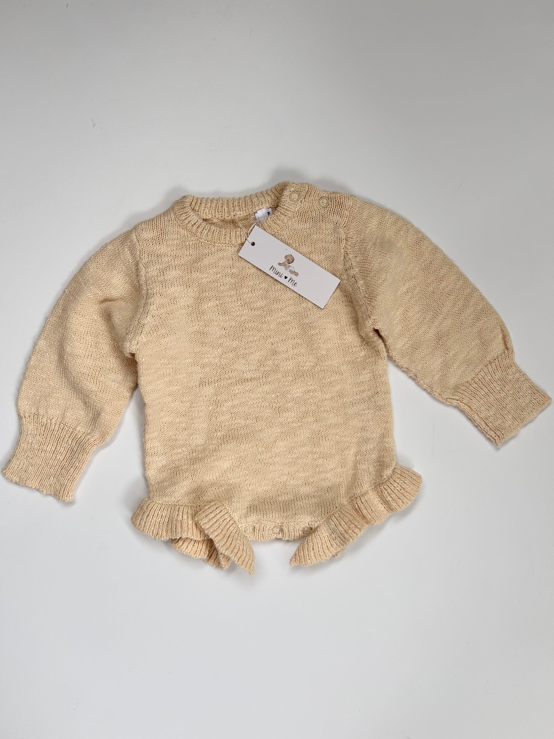 Delizioso pagliaccetto in morbido e leggero filo di cotone biologico disponibile in 2 delicatissime colorazioni: coconut e peach.