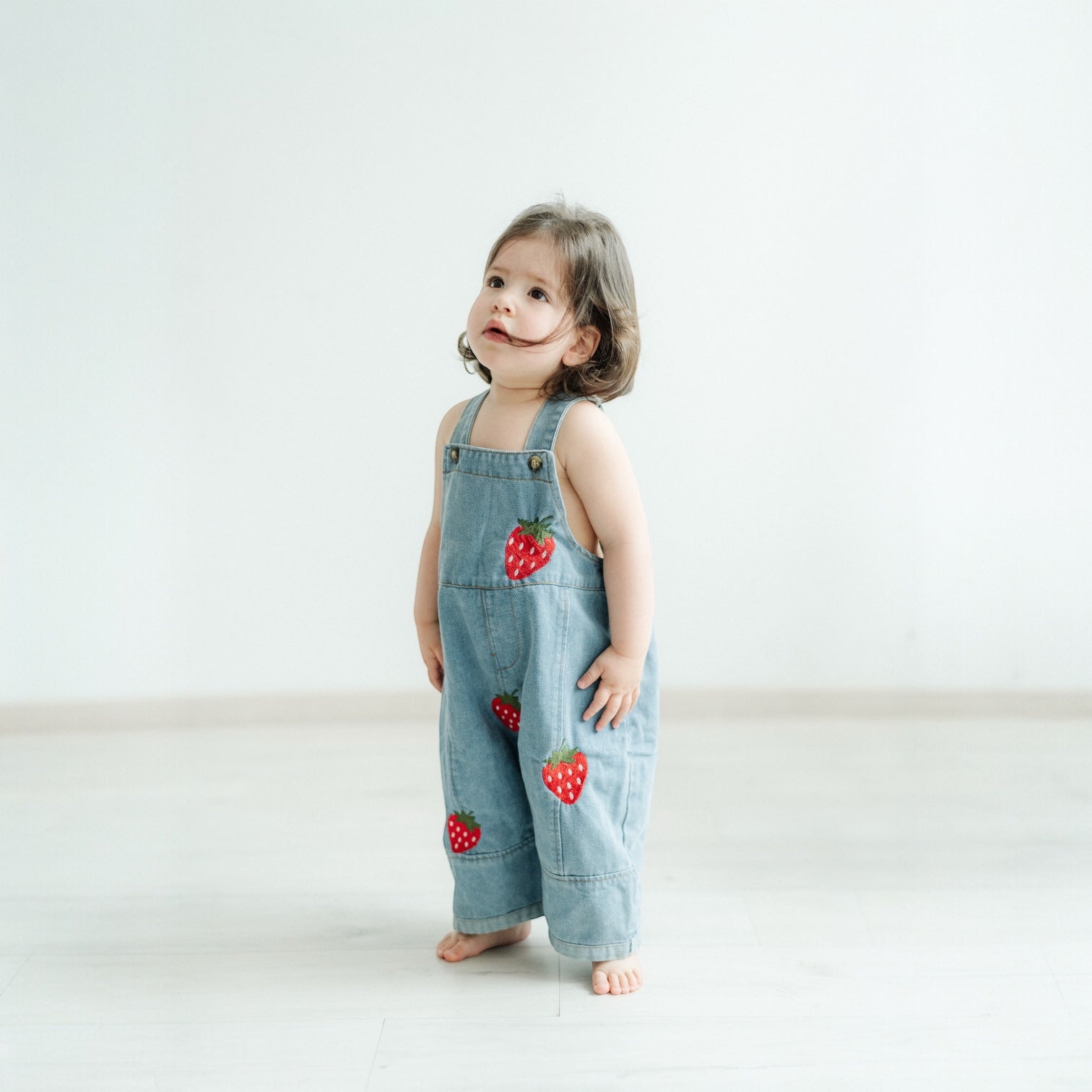 Divertente salopette in denim oversize per bambini e bambine realizzata in tessuto jeans super morbido.
