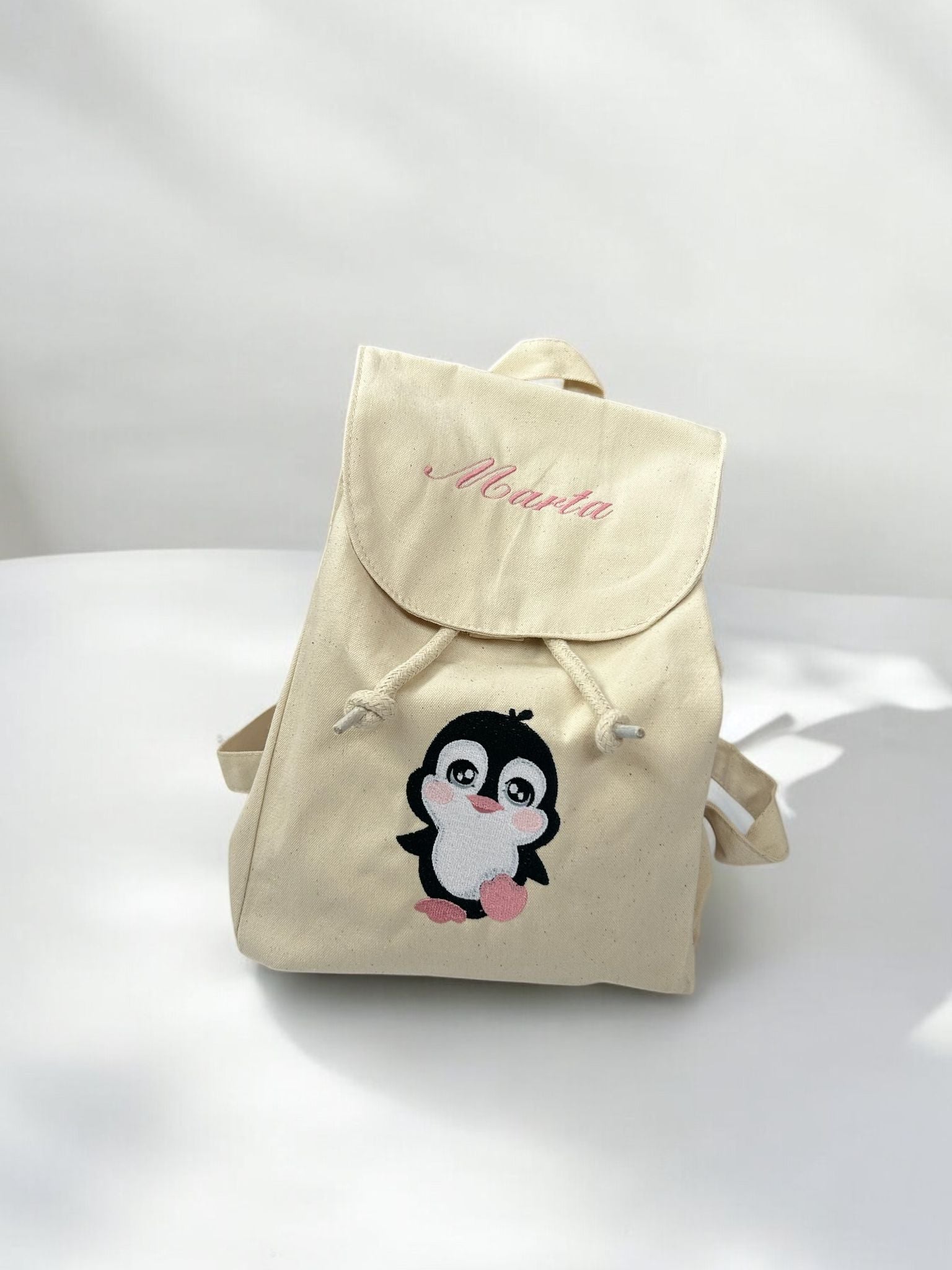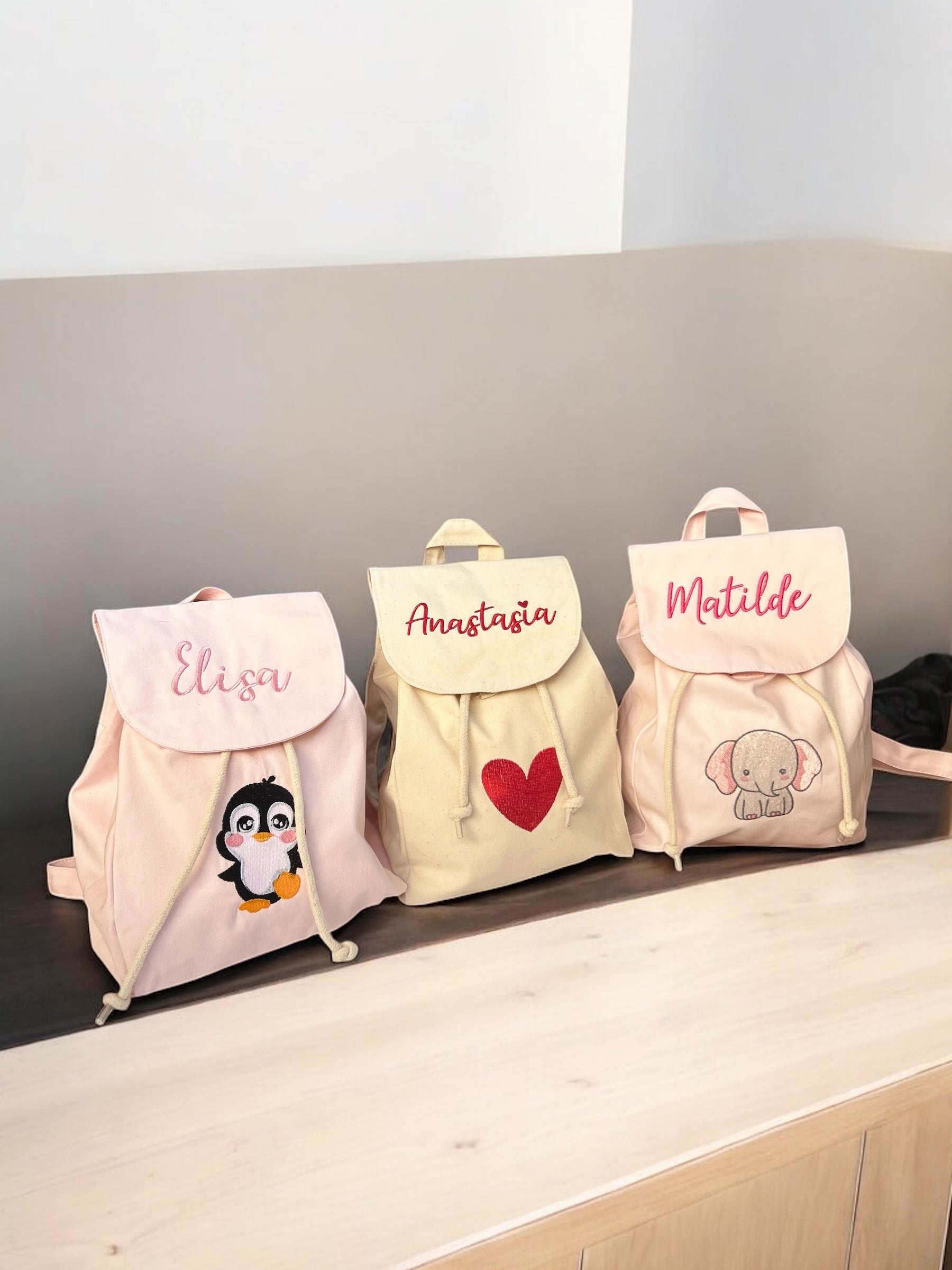 Questo zainetto asilo è realizzato in tela di cotone organico 100% certificato OCS, impreziosito da ricami che rendendo unico ogni pezzo. Perfetto per accompagnare i bambini al nido o alla scuola materna. Lo zainetto viene personalizzato con nome e disegno. Scegli il disegno che preferisci e scrivi il nome nel box personalizzazione.